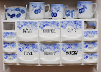 Sbírám "modré třešně" - to je moje největší a trvalá úchylka...takové postižení nebo úděl... moje radost :o) Začalo to jedním hrníčkem a teď už těžko hledám místečko pro nové úlovky...Tohle prostě nemá konce. Nejvíc mám hrníčků, ale dříve třešnička na ledasčem, takže jsem během těch let sbírání splašil i některé lahůdky...Nejvzácnější je asi struhadlo a určitě taky váhy s porcelánovým "ciferníkem" nebo nástěnný kafemlýnek. Dlouho jsem se načekala na hodiny, ale už je mám! Nedávno jsem za rozumnou cenu sehnala i velkou polévkovou mísu (tzv. terinu) - to bylo radosti...Ještě je pár kousků, které bych si přála, tak snad se na mě brzy usměje štěstí... Asi největším snem zůstává porcelánový mlýnek s třešničkou a vysoká časová konvice se sítkem...
