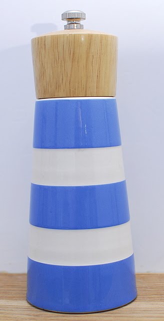 Tak tímhle mlýnkem to všechno začalo - stál tenkrát (asi před 12 lety) asi 900Kč, což bylo pro mě opravdu hodně (měla jsem čerstvě po maturitě), ale tak moc se mi líbil, že mi ho moje sestra koupila jako dárek... Myslím, že to bylo ve Vihohradské tržnici. Pak byl léta klid až do doby, kdy jsem našla fotečku pruhovaných hrnečků v časopise... začala jsem lovit na internetu... a brzy jsem měla v hlavě seznam všeho pruhovaného, co potřebuji...