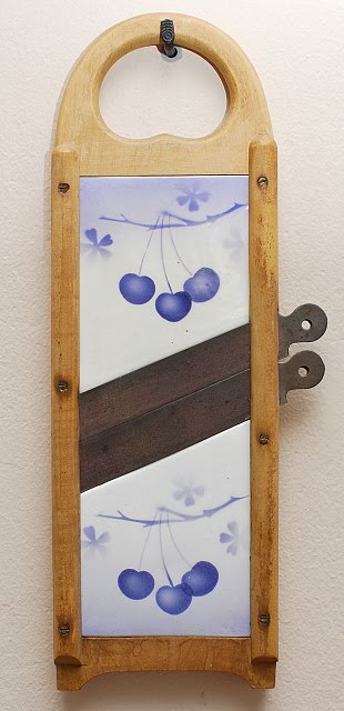 Neměla jsem ani tušení, že něco tak pěkného existuje, tak jsem si koupila podobné struhadlo s růžičkama, protože kombinace dřeva a porcelánu je mi moc příjemná. Až jednou při toulkách po Čechách jsem na jedné kozí farmě objevila tuhle nádheru...Drze jsem majitelku oslovila, abych zjistila, jestli na struhadle hodně lpí a vylíčila jí, jak moc se mi líbí. Dohodli jsme se na výměně - já jí při další návštěvě přivezla svoje růžičkové struhadlo a malý dárek navíc a odvážela jsem si domů překrásné třešňové struhadlo... Mám ho o to radši, jak jsem k němu přišla ♥